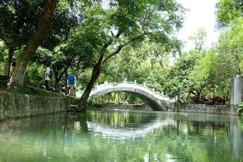 听着这样的故事,乌篷船穿过绿树参天的灵渠,导游姑娘在闲暇之余弹奏起了古筝。琴声如空山梵音,虚无缥缈,将我们带进了历史的深处,身心空灵,仿若坐禅,似乎是一个忘了时间的钟,停止了转动和思想,只觉身在此山,心在彼岸。