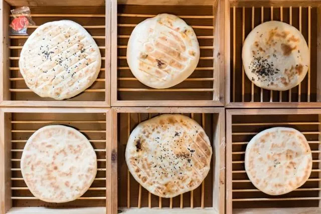 梅干菜、萝卜丝、或是咸菜,多种口味可选。烤制成功后,松软脆香的麦皮,咬上一口,香味直窜鼻腔,在嘴里炸出浓郁的肉汁。咸菜等的咸味儿盖住了肉的油腻,食之松脆,极其爽口,让人忍不住大快朵颐,回味无穷。
