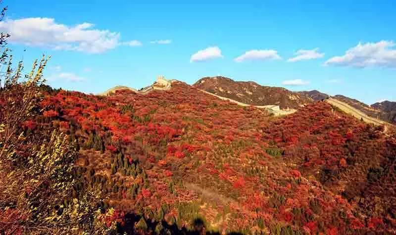 深秋季节,八达岭红叶岭似团团殷红的火焰,漫山遍野、这红叶经霜一打,在荷尽菊残的季节,越发红得妖烧。