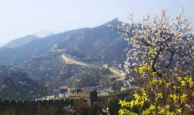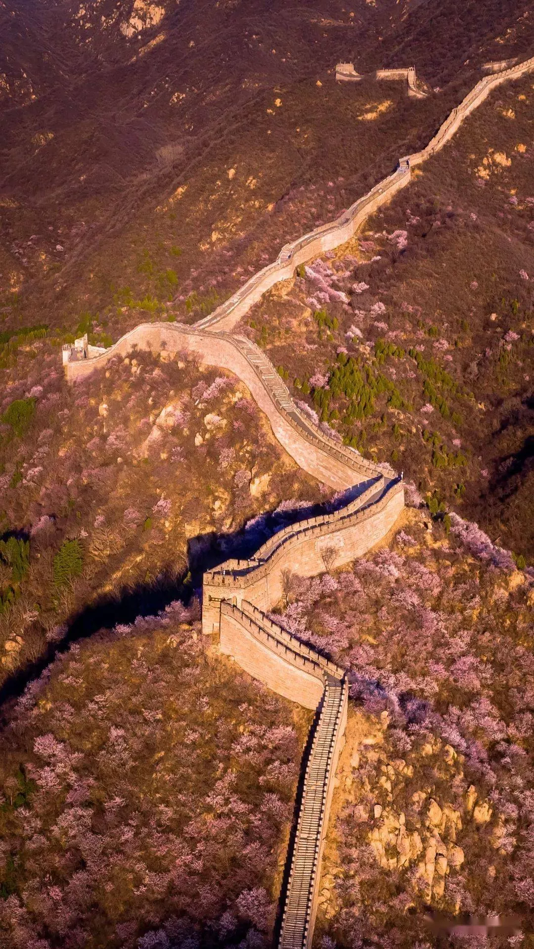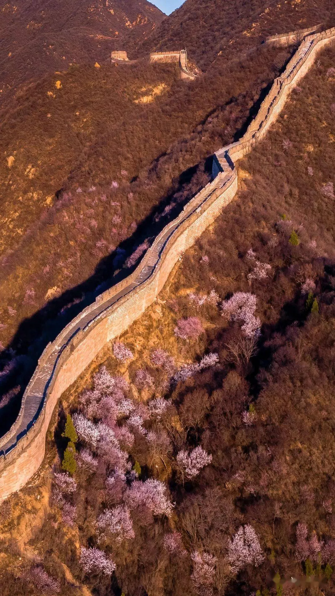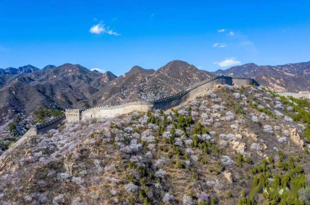 春天的八达岭长城一片生机勃勃,沧桑与新生并存。“杏花坡”每临春季花团锦簇。