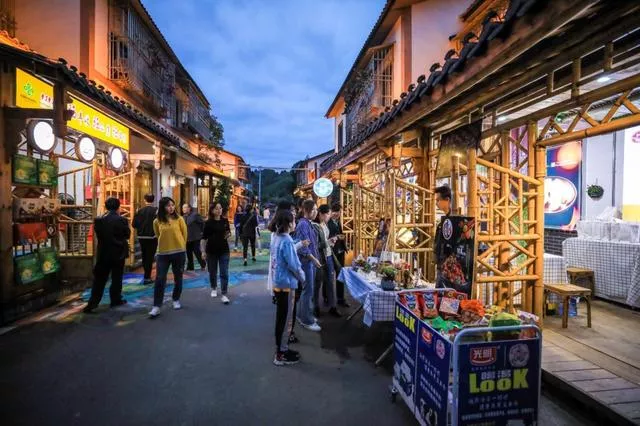 百里竹海风景区内的猎神三巷打造特色商业街,成为乡村旅游打卡地。熊伟 摄