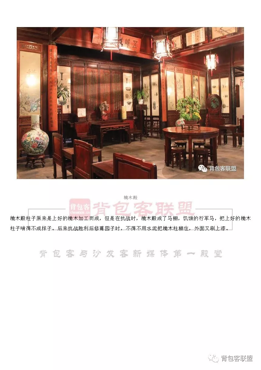 泰时去世后,“东园”渐废,清代乾隆五十九年(公元1794年),园为吴县东山刘恕所得,在“东园”故址改建,经修建于嘉庆三年(公元1798年)始成,因多植白皮松、梧竹,竹色清寒,波光澄碧,因园内竹色清寒,故更名“寒碧山庄”,俗称“刘园”刘恕喜好法书名画,他将自己撰写的文章和古人法帖勒石嵌砌在园中廊壁。后代园主多承袭此风,逐渐形成今日留园多“书条石”的特色。刘恕爱石,治园时,他搜寻了十二名峰移入园内,并撰文多篇,记寻石经过,抒仰石之情。嘉庆七年(1802),著名画家王学浩绘《寒碧庄十二峰图》。咸丰十年(1860),苏州阊门外均遭兵燹,街衢巷陌,毁圮殆尽,惟寒碧庄幸存下来。同治十二年(公元1873年),园为常州盛康(旭人)购得,缮修加筑,于光绪二年(公元1876年)完工,其时园内“嘉树荣而佳卉茁,奇石显而清流通,凉台燠馆,风亭月榭,高高下下,迤逦相属”(俞樾作《留园记》)。比昔盛时更增雄丽,因前园主姓刘而俗称刘园,盛康乃仿随园之例,取其音而易其字,改名留园。盛康殁后,园归其子盛宣怀,在他的经营下,留园声名愈振,成为吴中著名园林,俞樾称其为“吴下名园之冠”。30年代以后,留园渐见荒芜。1953年苏州市人民政府决定修复留园,并廷请了一批学识渊博的园林专家和技艺高超的古建工人。经过半年的修整,一代名园重现光彩。90年代,又修复了盛家祠堂和部分住宅,使原来宅、园相连的风貌进一步趋向完整。留园为我国大型古典私家园林,占地面积23300平方米,代表清代风格,园以建筑艺术精湛著称,厅堂宏敞华丽,庭院富有变化,太湖石以冠云峰为最,有“不出城郭而获山林之趣”。留园三绝是:冠云峰、楠木殿、鱼化石。鸳鸯厅,为一屋两翻轩,由南北两厅组成,南北两厅装修不同。北为方梁有雕花,是男主人会客的地方;南为圆梁,无雕花,北厅地砖也比南厅大,南厅是女主人会客和男主人听音乐的地方。用时参考