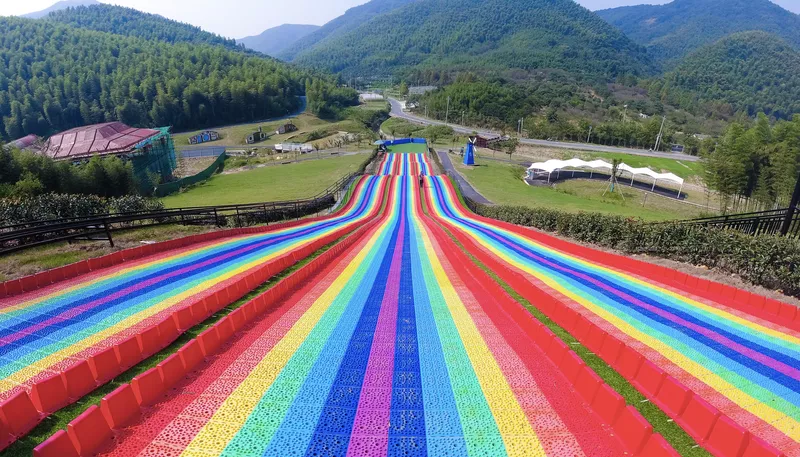 近年来很火的彩虹滑坡终于能体验一番啦,从彩虹山坡一路倾斜而下,尽情呐喊吧!