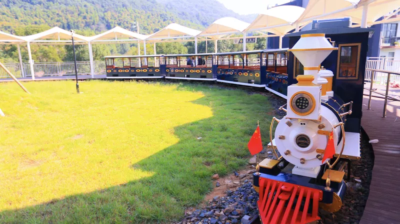 一个导航上找不到的地方,小溪两侧有个木屋城堡、中间吊桥相连,边上还有轨道小火车,小孩子坐小火车,在城堡里钻来钻去很是有趣。