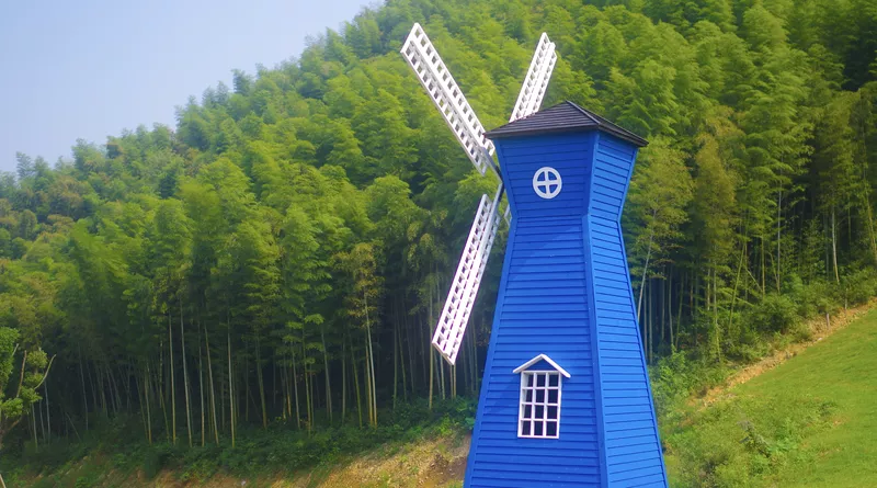 彩虹步道位于莫干山四合村的山顶茶园,里面有粉色大风车和彩虹钢琴,适合亲子和情侣。