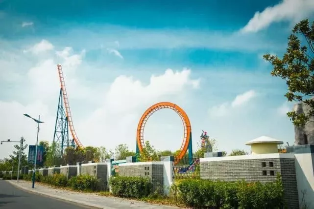 进入堤坝需转乘景区的观光车, 首先经过欢乐园。