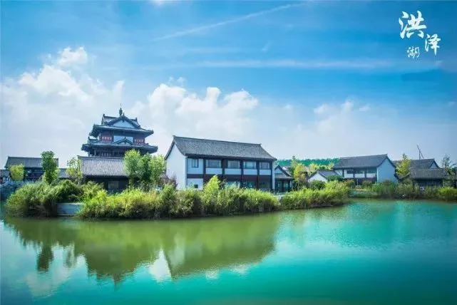 水釜城是景区的景点之一, 名字源于“堰堤有建瓴之势, 城郡有釜底之形”一说, 它汇集了中式元素,集水、城、林、堰、桥、舫、园为一体,苏派建筑的楼亭榭台清丽婉约,小桥流水旖旎柔情, 尽展苏式建筑之秀美,真可谓是现代版的清明上河图。