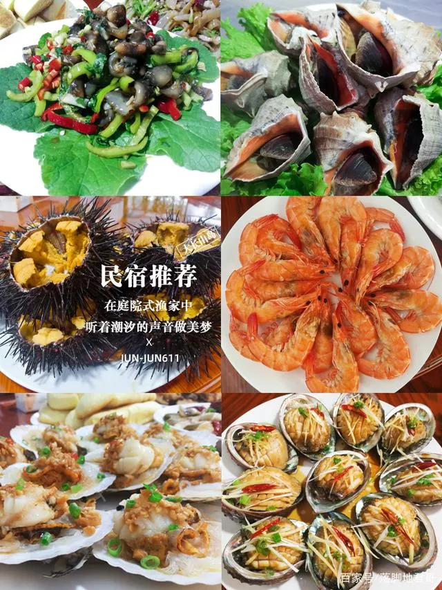 在民宿中,费用是包含一日三餐的,两正一早,正餐一般都是十个菜,大多数为海鲜:扇贝、蚬子、海鱼、海螺、螃蟹、海虾、皮皮虾、海参、鲍鱼、海胆等,套餐价格分为300、400、500,价格不同,吃的海鲜也稍有不同。