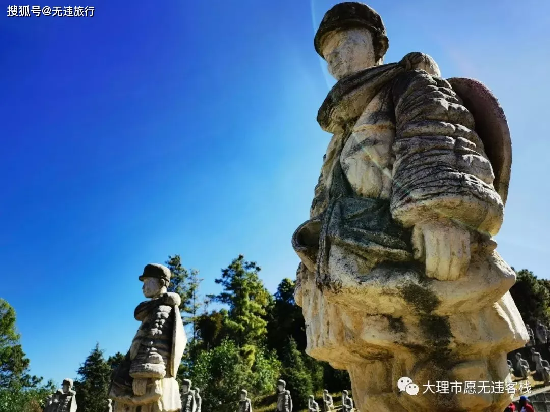 据讲解员介绍,雕塑群建成于2013年9月3日,是由雕塑家李春华创作并捐赠的。整个雕塑群位于滇西抗战主战场松山主峰子高地南侧,由402座单体雕塑组成。