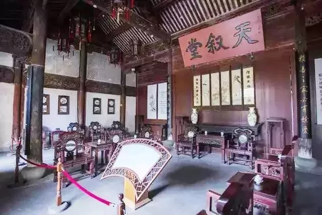 大厅正中有“天叙堂”匾额,两旁分别为黎元洪、于右任题匾,与成套的紫檀家具、古玩珍奇、名人字画构成一种雍容华贵的气氛。
