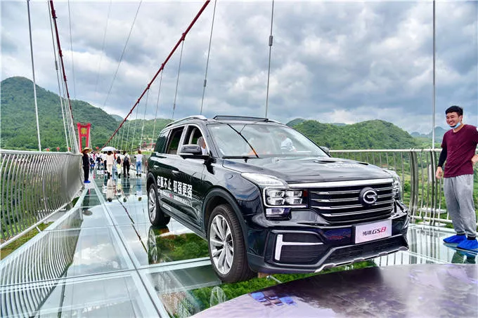 为挑战玻璃桥的安全性,显示中国制造的品质与魅力,2辆重达4吨的传祺汽车要驶过玻璃桥见证“传奇”。挑战开始了,广汽传祺旗下2020款GS8旗舰级SUV和兄弟车型GS8S,搭载着吉尼斯认证官及两位见证官,像“钢铁巨侠”风驰电掣在全透明的空中走廊上,犹如轻功登峰造极的“东方武侠”般凌玻微步,轻松地驶过玻璃桥,非常平稳,稳过飞机降落。