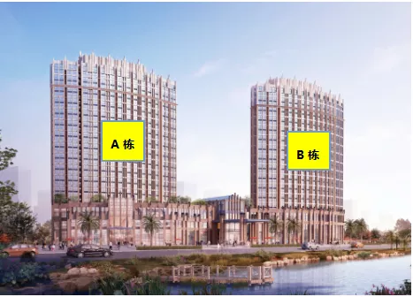 水晶山文化主题酒店公寓主要由2栋塔楼组成,从左往右分别为A栋和B栋,5楼到29楼为酒店公寓、5梯24户,目前在售A栋产品,均价13000元/㎡