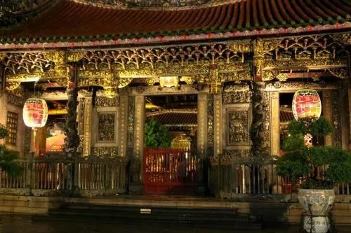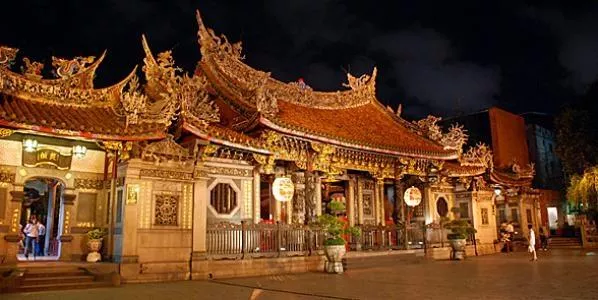 龙山寺在台湾台北市西南,临淡水河。清乾隆三年创建,至五年建成。其地原名“艋舺”,为台北市区的发轫点。所供神像甚多,主神观音佛祖,亦称安海观音。每年农历二月十九日神诞,有盛大祭典。原建筑于嘉庆、同治间先后被地震和风雨破坏,现存建筑多为1920—1926年改建,1953—1965年扩建。正门石阶两侧保全的二铜柱是早期遗物,为重要的艺术品。
