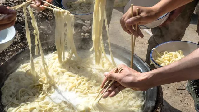 这里有一家农户可以为过往的旅人提供一些补给,其中就包括10块钱不限量的面条,平时吃倒是没什么,不过当一个人饥肠辘辘的时候,面条也就成为了比生猛海鲜更为诱人的“饕餮盛宴”