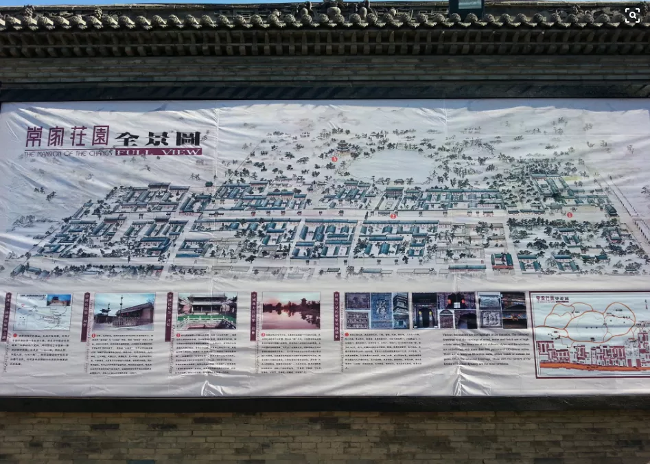 常 家庄园之恢弘,不是一般人想象得到的。跨过二丈五尺宽的拱型石桥,穿过七丈二尺高的堡门,展现在人们面前的是一条长达650米长的清代街道。长街的南北宅 院紧靠,无一条横向通道,形成了“临街门户依次开,堡门 关闭如一堂”的格局。洋洋洒洒60多万平方米,房屋4000余间,楼房50余座、园林13处。