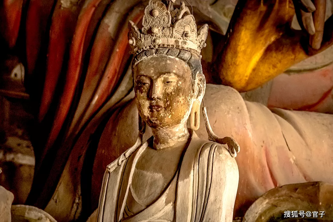每尊佛的两侧都各有一位供养菩萨,也称胁侍菩萨,这是当时流行的佛教造像模式,造型各异,栩栩如生。