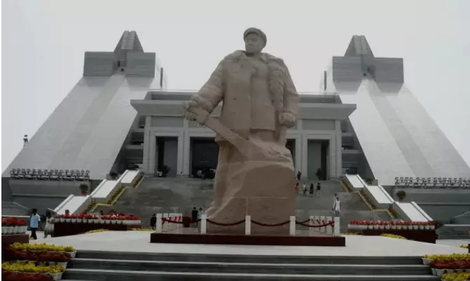 大庆铁人王进喜纪念馆是我国第一座工人纪念馆。馆区占地面积11.6公顷,主体建筑面积2.15万平方米,展厅总面积4790平方米,展线总长度917延长米。主体建筑外形为“工人”二字组合,鸟瞰呈“工”字形,侧看为“人”字形,象征这是一座工人纪念馆。主体建筑高度47米,正门台阶共47级,寓意为铁人47年不平凡的人生历程。建筑顶部为钻头造型,象征大庆油田奋发向上,积极进取。