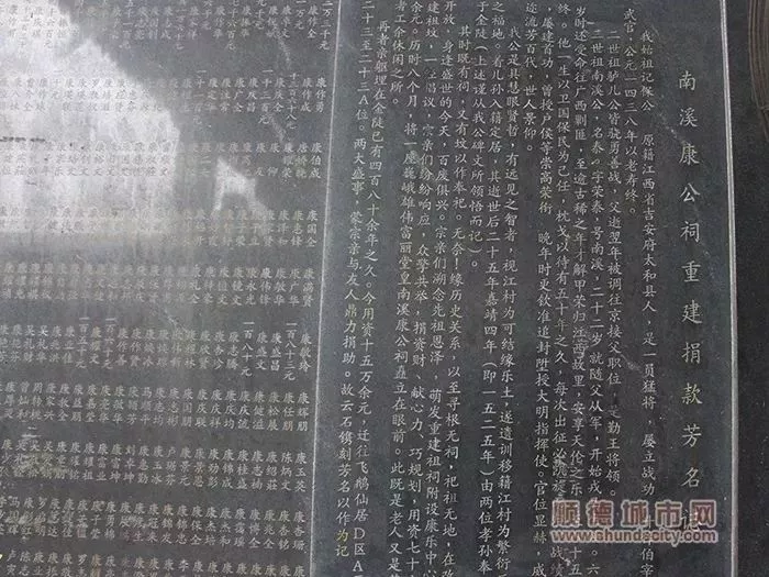南溪康公祠重建捐款芳名记▲