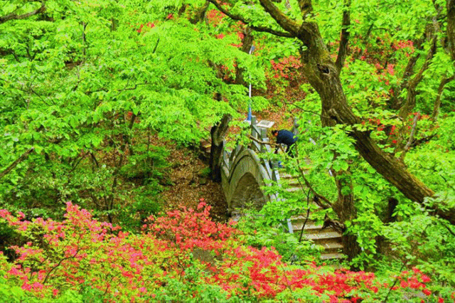 这里,是杜鹃花的海洋。漫山遍野的杜鹃花,像晨雾里的火光,似彩云中的霞光。