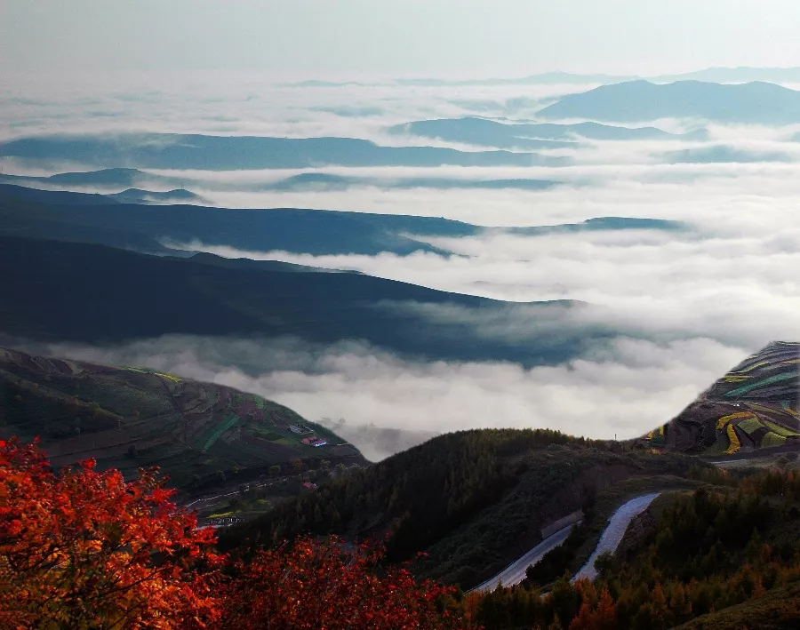 六盘山是我国西部黄土高原上的重要水源涵养林地和国家级自然保护区,素有“高原绿岛”之称。六盘山又名陇山,南北走势跨越宁夏、甘肃、陕西三省区,绵延240余千米,宽10余千米,主峰米缸山海拔2931米,山势巍峨险峻。六盘山物种丰富,森林覆盖率达72.8%,有高等植物788 种,野生动物213种,鸟类158种,昆虫905种,年平均气温5.8摄氏度,平均降雨680毫米,是泾河、清水河、颉河的发源地。六盘山,古称高山,《山海经》说,高山“其上多银,其下多青碧、雄黄、其木多棕,其草多竹。泾水出焉,而东流注入渭,其中,多磬石、青碧。”意思说,六盘山上有很多白银,山下有很多碧玉和雄黄,山上生长着茂密的树林,其中以棕树最多,还生长着很多竹丛,泾河发源于这座山,向东流去,注入渭水,水中有很多磬石和青碧。山上云海形成最为壮观,以日落日出最为美丽。云海形成时,波澜壮阔,浩瀚无际,千条深谷,万道山梁,一并淹没在云涛雾海之中,高峰峭立,低峰浸底,中峰若浮若沉、若隐若现,可谓“处处真成银色海,青青独露几峰高”。