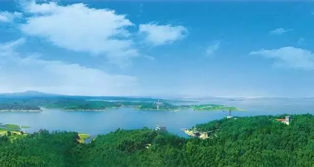 这里水中有山,山中有水,相映成趣,风景奇特壮观。水天一色,周围峰峦叠翠、鸟语花香,充满了诗情画意