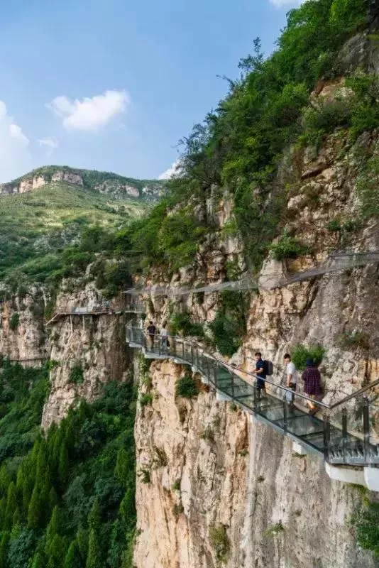 [青铜山大峡谷玻璃栈道]是山东首个挂壁玻璃栈道,距地面约130米,长300米,玻璃栈道采用超白精磨钢化夹胶玻璃,青铜山大峡谷玻璃栈道也是济南周边最长的玻璃栈道。