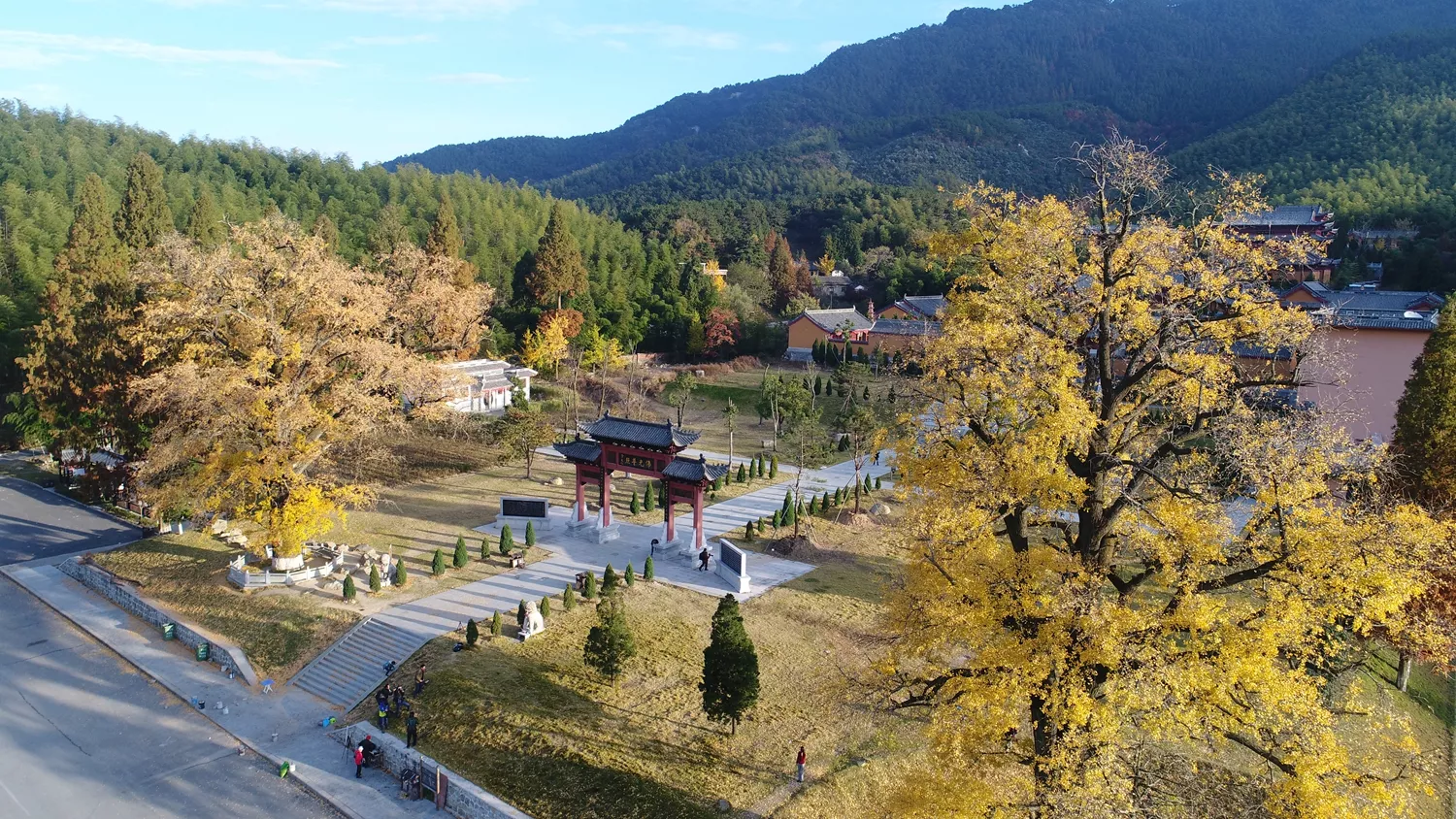 据悉,法眼寺由著名高僧无念禅师于明万历28年所建。每年的10月底到11月上旬,法眼寺门前树龄已经超过1300多岁的银杏树,其落叶将草地、石板路和屋檐铺满了一层金黄。寺庙更是浸染在黄灿灿的彩色世界里,成为秋日里一道绝美的风景,也见证着这所深山古寺曾经的辉煌过往。