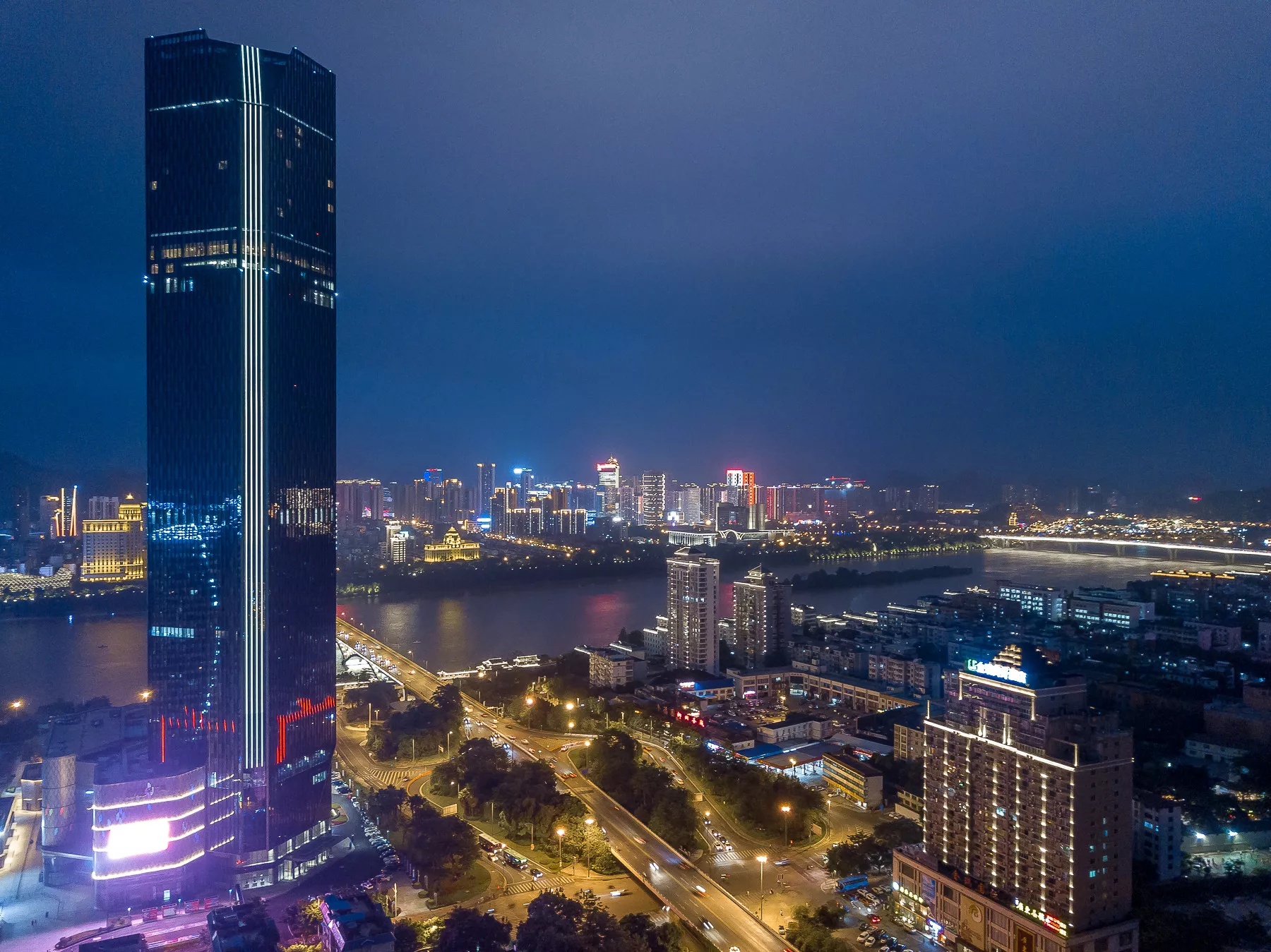 因为在柳州,百里柳江是游玩的最重要景点,尤其是夜景,所以就选择柳江江畔的酒店。不但方便,还能在酒店里俯瞰百里柳江全景。