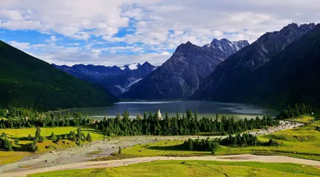 美丽碧波的湖水随着季节交替变换着不同的颜色,玉隆拉措你的容颜犹如岁月里开出的花,清新优雅。你的宁静秀美形成川藏北线上一道亮丽的风情。若你不曾见过玉隆拉措碧绿的湖水与流动的白云,你或许会遗憾很久很久......