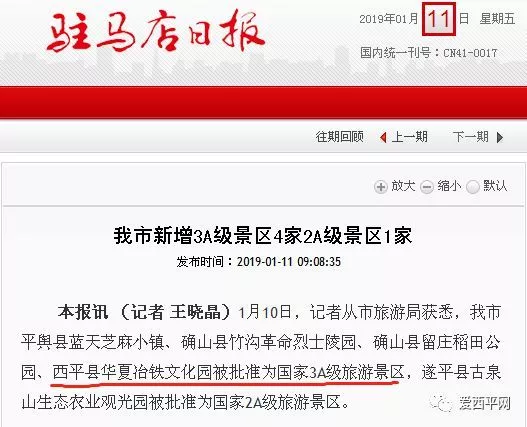 刚刚,西平县华夏冶铁文化园被批准为国家3A级旅游景区…