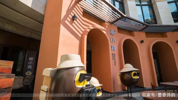 除了海鲜和蛙小侠之类的美食店外,这里还有什么店值得推荐呢,在美食街闲逛的我被造型卡通的小鸡所吸引,后面才得知椰小鸡就是其中一家本地知名品牌,设计充满了小清新的感觉,主打海南菜。