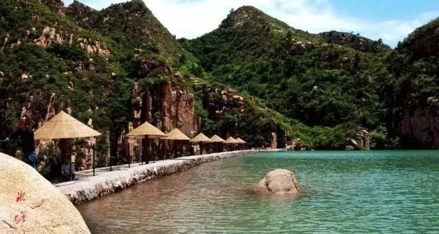 景区内金水桥与银水桥之间,碧水绕山,玉带环沙,自然形成的C型“月亮湾”,集奇峰、碧水、金沙于一体,是戏水、垂钓、休闲的绝好去处。北国地域,南国情调。在“月亮湾”开发的竹筏漂流,被誉为“秦皇岛第一漂”。一支竹篙在手,小河放舟,水中有山、山中有水,船游峰头,云游河底,如诗如画,使人有一种置身江南水乡、漓江之上的感觉。