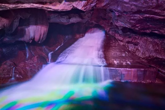 冠岩洞内五光十色的灯光,品尝完美食再去岩洞内逛一逛凉爽的温度好不自在~最后再乘坐滑道车出洞,完美的一天~快带上家人朋友一起来吧~
