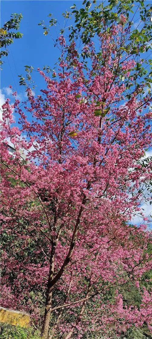 冬樱花又称红花高盆樱桃,属蔷薇科,樱属植物,秋冬开花(10月-翌年1月),花色粉红,盛开时花开满树,繁花似锦。