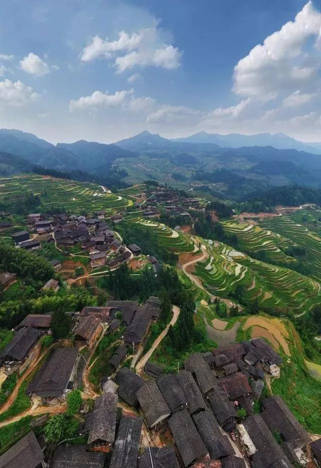 梯田层层叠叠,木楼错落有致