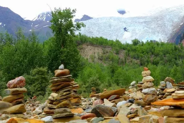 冰川下端是针阔叶混交林地,皑皑白雪终年不化,郁郁森林四季常青,到是一副壮阔的景观。在这里,冰川、湖泊、农田、村庄、森林等融会在一起,形成一幅自然和谐的画卷