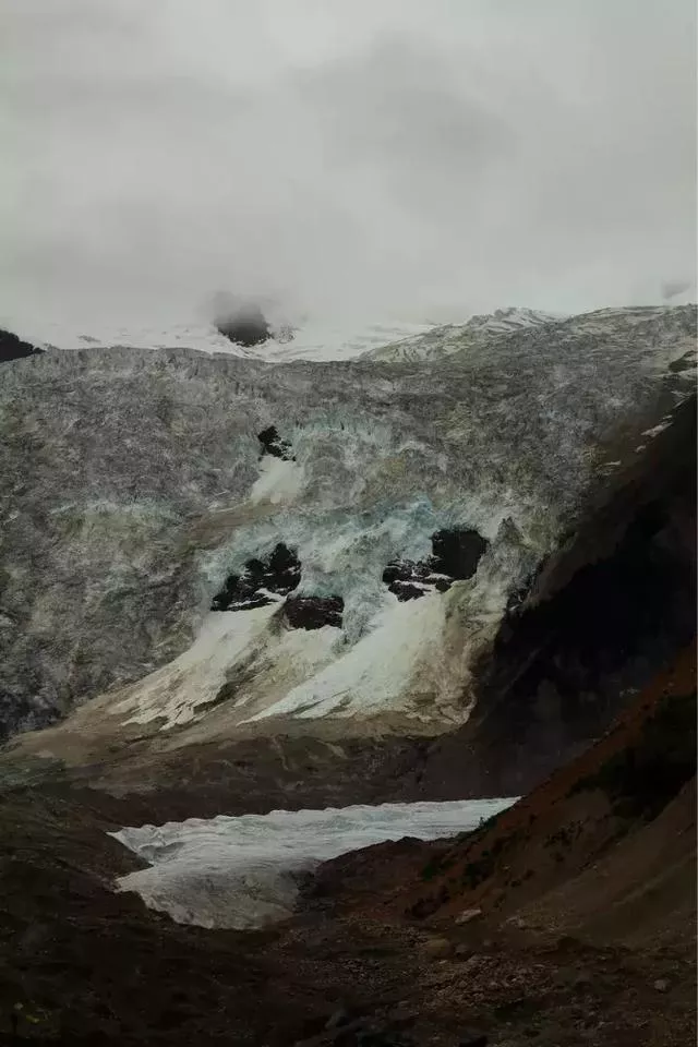遇到冰雪封湖期,并不能看到完美的冰川倒影,胆大的游客翻过警戒线抵达前沿探营。由于天气原因,似乎比想象中的米堆冰川缺少幽灵般的神秘感。