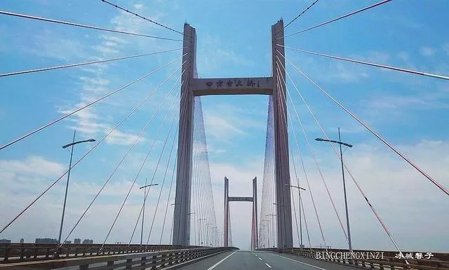 四方台大桥自2001年7月开工,全长1268.86米,主桥是双塔双索面钢-混凝土结合梁斜拉桥,设计洪水频率为300年一遇,2004年9月竣工。