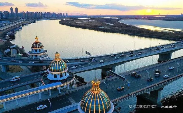 与此同时,毗邻而建的雄伟壮观的城际高铁哈齐客运专线松花江特大桥开通,全长3460.58米,跨度长626.6米,设计时速250公里。这是一条创下多个世界之最的中国首条高纬高寒高铁。