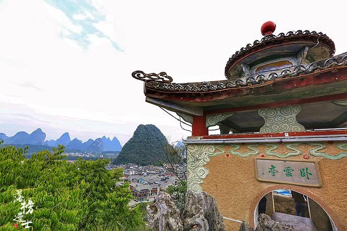卧云亭就在阳朔公园的西郎山上,据当地人描述,卧云亭与十几年前的模样相比几乎没有变化,站在这亭中向山下望去,一栋栋桂北建筑就像沉睡的孩子一样,静悄悄地躺在大地上。