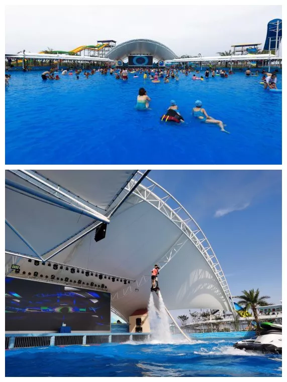 安全规定:请从浅水区域进入造浪池勿从两侧进入