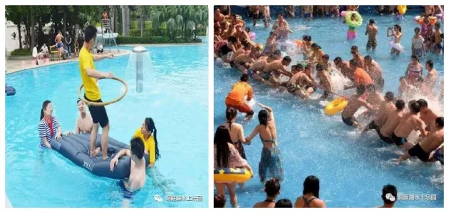 让孩子亲近家长,也让家长了解孩子,唤起亲子家庭成员共同体意识,我们设置了一些水上亲子趣味互动游戏“水上拔河比赛”“水上呼啦圈”“爸爸快跑”“勇往直前”“球球别跑”等等项目,营造轻松减压的亲子氛围,共享大小同乐的亲子时光,让家长回归童年的无忧无虑,与孩子一起体验零压力的快乐。