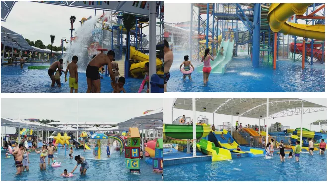 有14个游乐项目:由众多盘旋而上的阶梯和滑道组成的中型互动水寨、有许多色彩缤纷的卡通人物的儿童戏水小品池、儿童冲天回旋滑道、儿童小碗滑道,在碧波荡漾的水池中各种玩水活动适合全家出动。