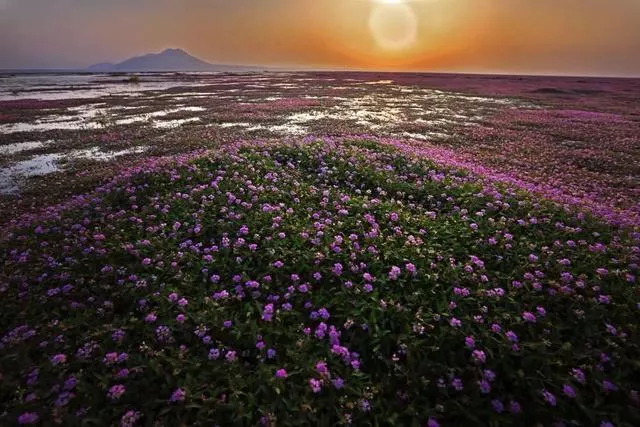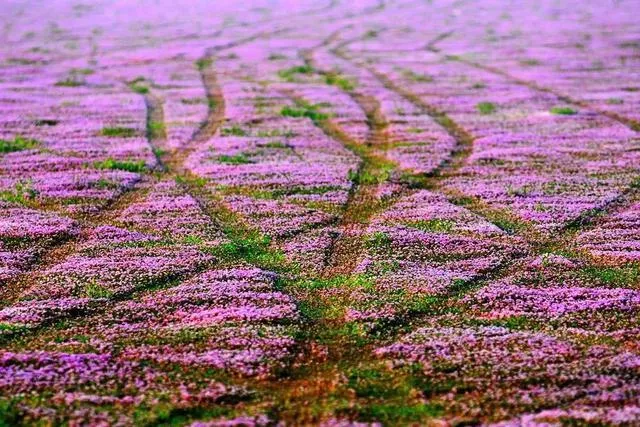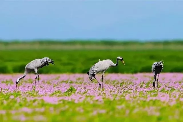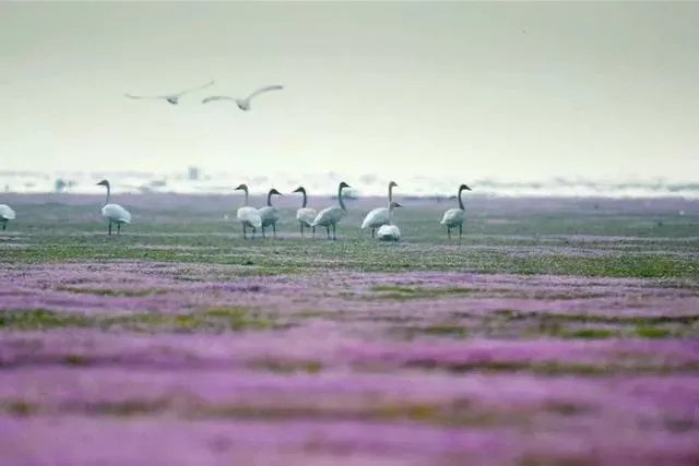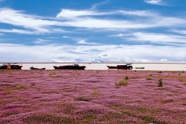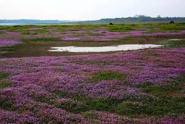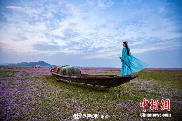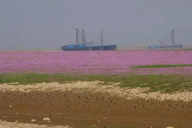 昔日浩渺的湖水不再,裸露的湖床上会盛开一种粉紫色小花——蓼子花,形成紫色的鄱阳湖花海。