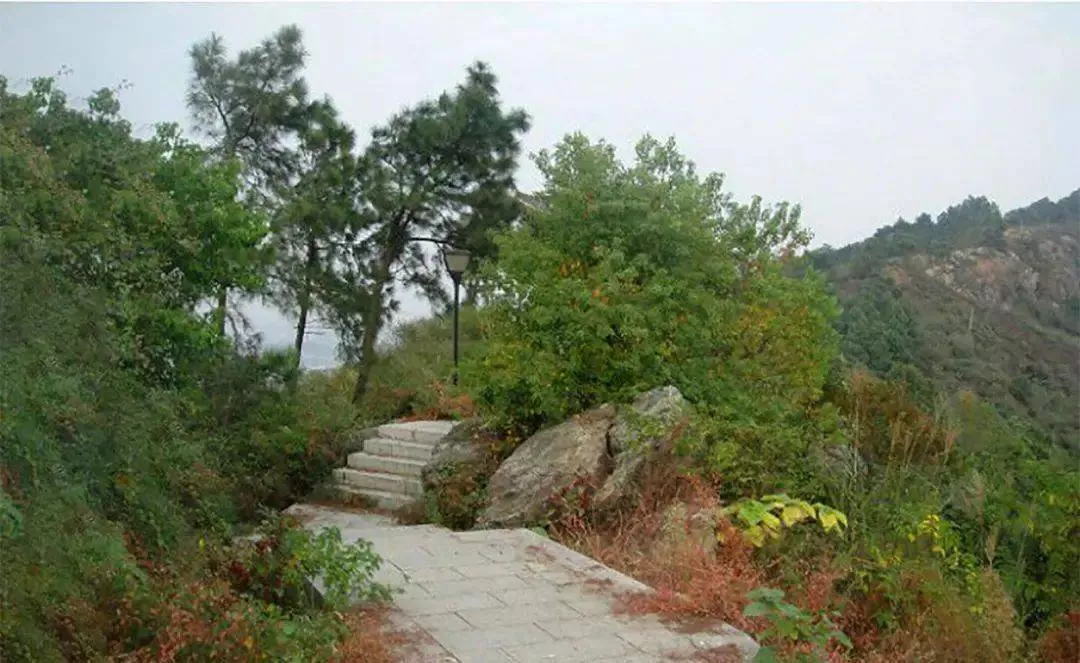 跨入南山大门,眼前便是一排长长的石阶,蜿蜒曲折向上,直通山顶。沿途两边都是茂密杂树林,温暖的阳光透过树叶间的空隙,斑驳陆离洒在台阶上,照耀在我们身上和脸上,暖暖的,感觉真舒服。