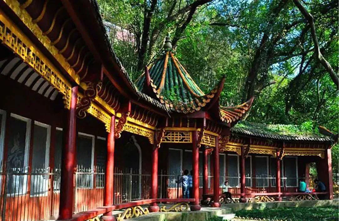 远远看见了南山公园山顶上的高耸入云的灵运塔,整座山坐东向西,被茂密的树林所环绕,古朴漆红色的建筑点缀着山间,在阳光下,格外醒目。