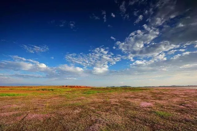 蒹葭苍苍,白露为霜,蓝天白云、翠草亲水、白芦红花,令人流连忘返;湖床上还将盛开蓼子花,形成鄱阳湖独特的“草原花海”奇观。