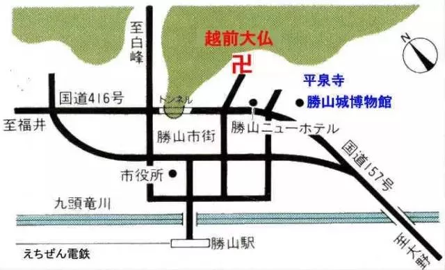 铁道交通:JR北陸本線-福井駅下車-えちぜん鉄道勝山永平寺線,「勝山行き」乗車60分钟,勝山駅下車,京福巴士,大仏前站下車。
