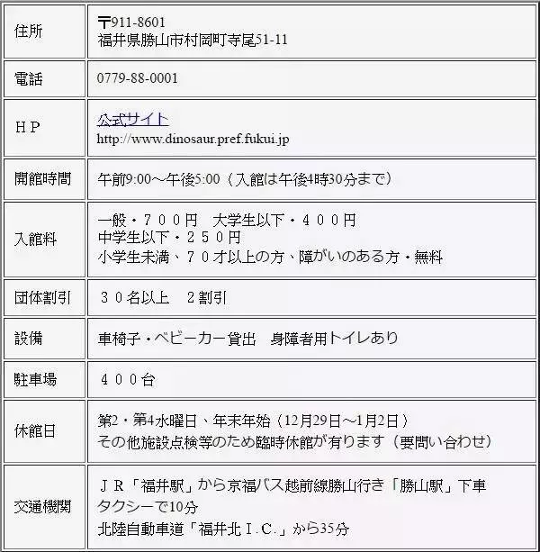 自驾游:北陸自動車道:福井IC、丸岡IC,国道416号,勝山方面,約40分钟。