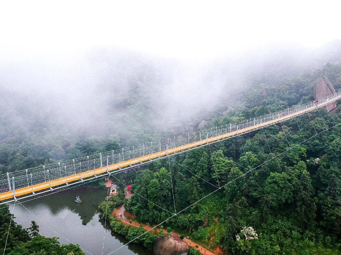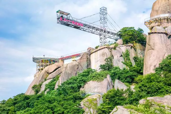 520巨石山“过江龙”吊桥丨一生必来的地方,人生不留遗憾之地!这座365米的黄金项链横跨在天险之上,,安庆520巨石山“过江龙吊桥”其长度更长于闻名世界的德国吊桥,其惊险程度更是不亚于前者。